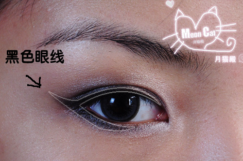 眼线画的稍稍夸张,在画线内区域 统统画黑~~