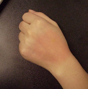 Benefit的是防水的,因为是水状的比较贴合肤质,所以更持久。从手指涂抹之后,残留的胭脂水不容易洗掉,看有多防水呢!