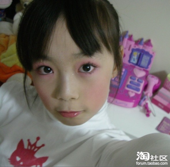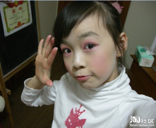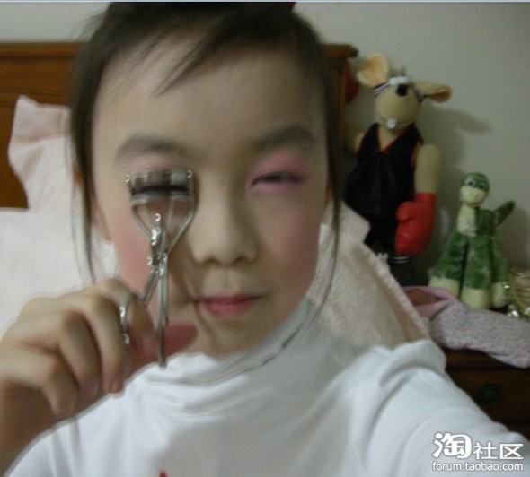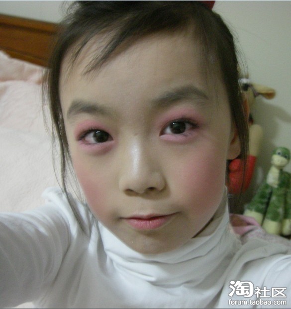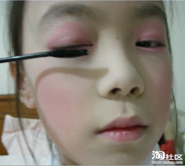 下面就要动睫毛了!妈妈不让用假睫毛,因为小孩子用假睫毛不好,所以丸子也很会搞的把睫毛变长哦!