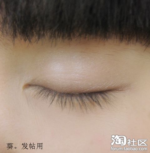 小葵这只眼睛是内双加外双,所以只能画眼角的部分,因为其他地方要画的话就必须画很粗,闭眼的时候会很恐怖额~