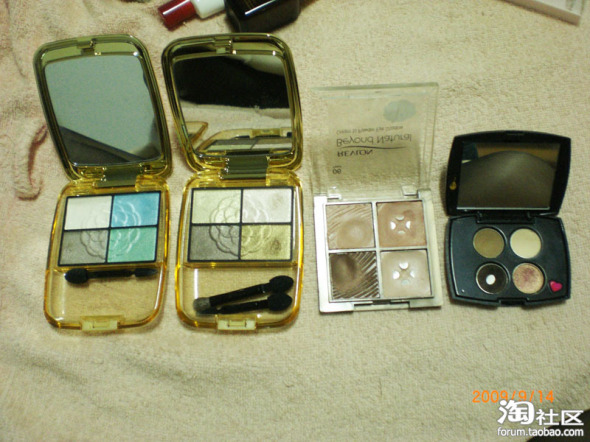 左边一二都是欧泊莱去年新出的彩妆·~~一下子买了两个,真的好喜欢~现在lulu用的是大地色那个比较多,至于蓝色和绿色的那个···闲置中··准备转出去···呵呵,物尽其用吧,蓝色和绿色不适合我··