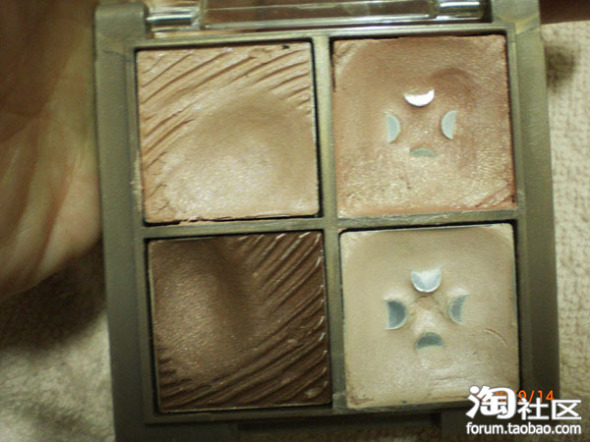 兰蔻的四色眼影~!!!如果说出门的话,我一定会带着个出去~~年度最佳上镜哦~~兰蔻的护肤品我虽然不感冒,但是彩妆做的真的很好~·左上角的颜色可以用作眉粉的功能!!!右边的米色也很正~!左下角的棕黑色里边带闪闪的小亮片,很细腻~~可以代替眼线,又自然,又干净,盒子拿在手里也很舒服,爱不释手~~~