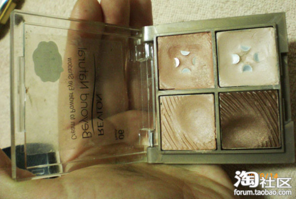 露华浓的膏状眼影~!我买的是大地色的那个,一体多用了,很有爱~唯一不足的地方,姐妹们看,用到底是这个样子的··········用到这个地方的时候很不方便,因为露出来的那个银钩···