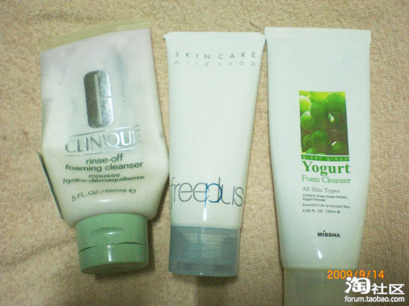 2.中间的是freeplus家的泡沫洁面~~lulu用的第一款氨基酸洁面产品~~!!!!目前的最爱!!我是在专柜买的呢,记得当时是去年十一,我去北京玩,看到就买了回来。其实lulu所在的城市也又他家专柜,但是····北京专柜ba真的很大方···赠品和试用装很多·这款洁面即使是洗完脸后,也不会紧绷,而且每次洗完脸我都会莫名其妙的心情好·为什么?因为每次洗完脸我都感觉皮肤很清透~~也许这就是年轻的好处吧,不用太昂贵的产品,肌肤的本色是最漂亮的~~只是一瓶很不禁用,我用了大概2个月,这个就用光了···考虑什么时候他家有活动的时候批量的购买~~