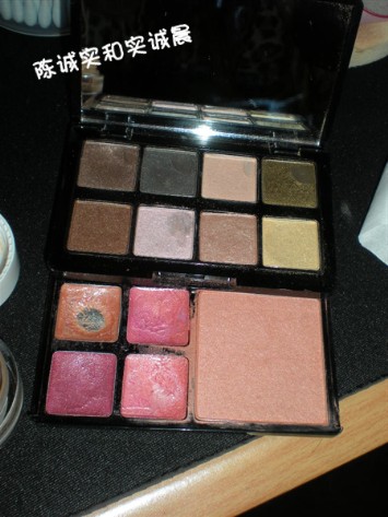 自从买了这一个,我就彻底喜欢这个牌子了,上色也很好,尤其推荐组合的形式,腮红,唇膏,眼影,一应俱全,就是会弄的不太干净,不是陈诚实我想弄成这样,真的是大刷子一扫就扫成这样的。。。。。啊~说的太罗嗦了,今天是说nyx的,哈哈,就选了一个颜色,最出名的榨菜绿~~~哈哈~~爱好彩妆的姐妹们一定知道~~