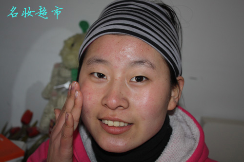 用食指,中指,无名指三个指头轻拍推匀隔离霜。大家看我们MM的照片哈,其实擦完隔离以后,脸色就好像亮了许多。