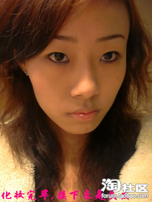 第一次发帖子,希望大家给点意见,初学化妆,还希望各位高手给点意见啦!妆前(很恐怖的素颜)