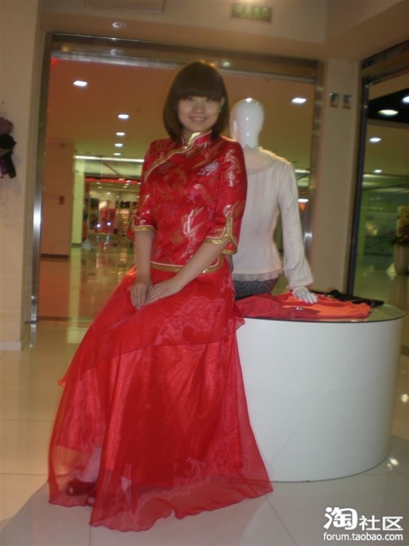 这张是我在看懿菲旗袍时让朋友给我拍的,呵呵因为我从来没穿过这么“中国风”的衣服,心里非常激动啊~心里更有种小想法,结婚时一定要穿旗袍哈哈哈哈哈噢对了,因为我平时爱穿运动袜,所以没脱掉,大家不要笑啦拜托的啦