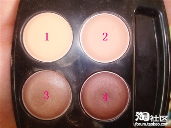 眼影,买的事后本来是想画烟熏妆的,可是买回来之后发现不会画.... 我一般都会先用2号在眼窝的地方打一个底,然后直接用4号或者3号在褶皱的地方用中指晕染上。这个地方记住一定要用手指哦,因为手指的温度更好上色,而且持久性强。(这里用的4号)