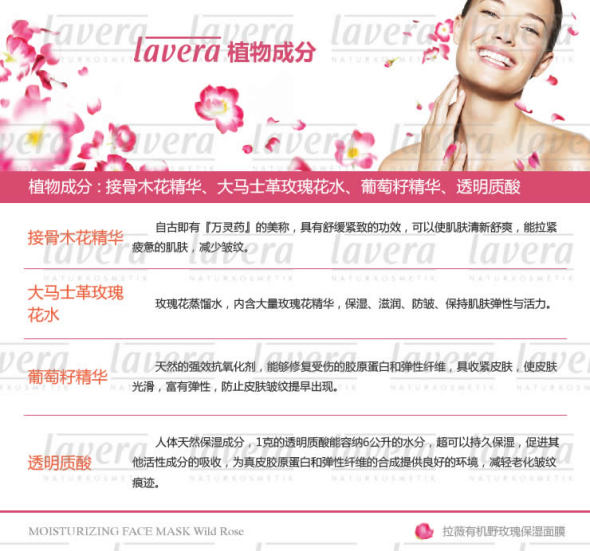 野玫瑰系列保湿面膜为您的肌肤提供额外的营养, 使肌肤紧致有弹性。每星期使用1-2次,让您拥有如 丝般柔软的肌肤。