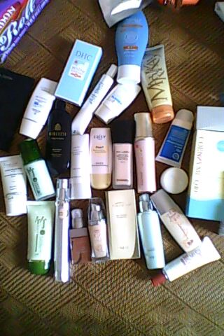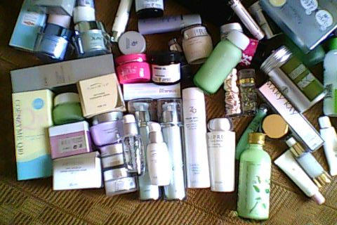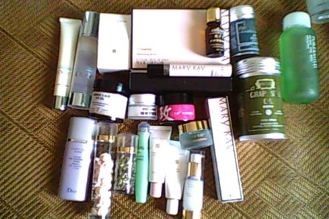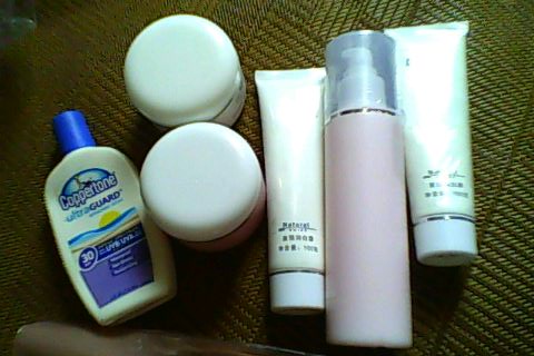 偶常常用的乳液跟霜~话说有好多款找不到了T-T一时间又不知道被偶扔哪里去了!~男朋友兼管家又上班去了T-T下次一定补全!~这里偶比较喜欢DHC白金抗氧精华跟玫琳凯幻时的日霜晚霜!还有ZA的也不错!~男友送的七夕礼物雪肌精还在路上!~没有到~下次补全的时候一起发!~HOHO~!雪肌精素偶的最爱!