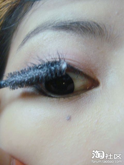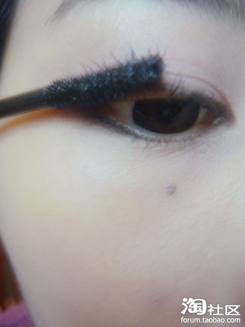 从睫毛根部开始,以Z字型刷,我用的是KISS ME 凡尔赛浓密睫毛膏,卷翘