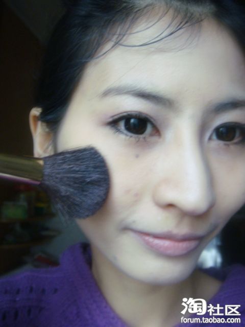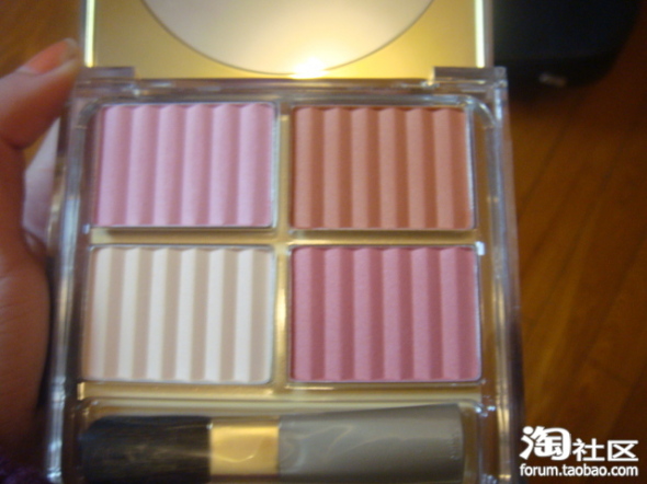 我用的是雅诗兰黛四色腮红,选左上最粉的颜色