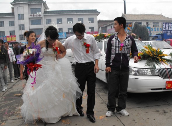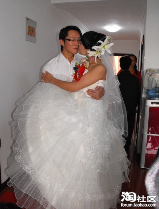 时间到了,该上花车啦,走啦,老公给我穿鞋子哦~