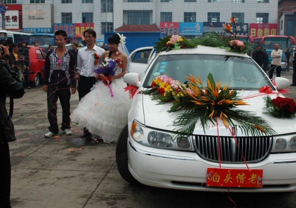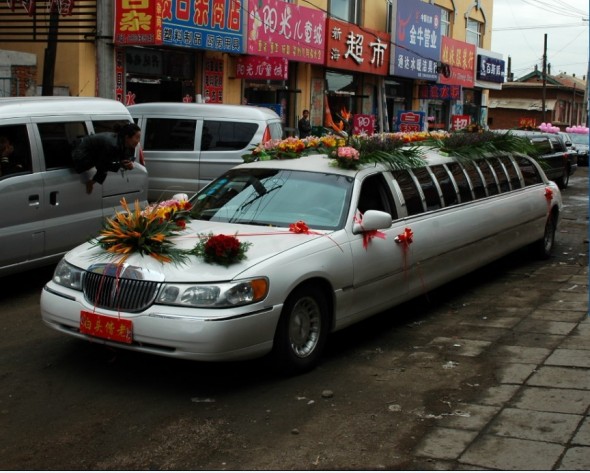 上花车啦,林肯加长哦,据说此款彩车的花就要3000大洋哦,奢侈,还好老妈是搞这行的,他们很讲,都是免费提供。这次婚礼有两部加长,另一部是黑色的,和这款白色的比起来逊色很多,我们就不给他特写啦,呵呵~另外还有20几辆小车车~人多车多,感觉很热闹呢