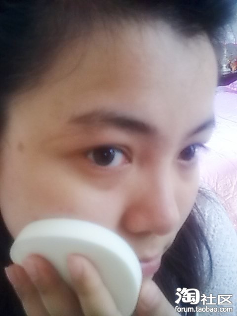 这是扑完粉饼后的效果,皮肤是不是滑了些?