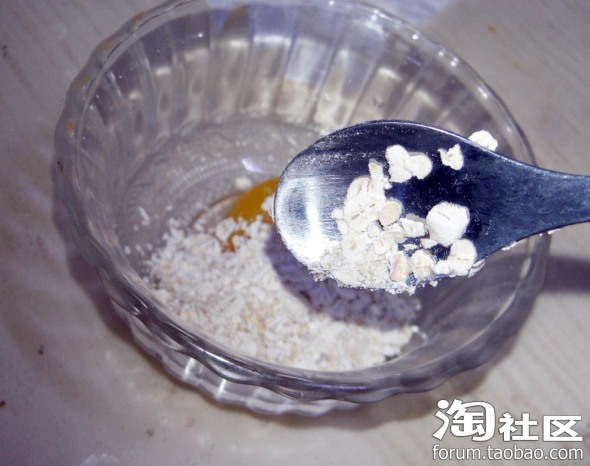 哈哈这是我自制的面膜工具有鸡蛋勺子燕麦都是平时吃不完的东西可以废物利用了