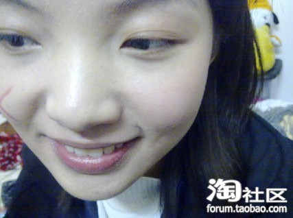 第五步,上腮红.这次用的是贝令妃的液体腮红.感觉很自然,好用.推荐喜欢自然泛红脸颊的MM使用哦.!