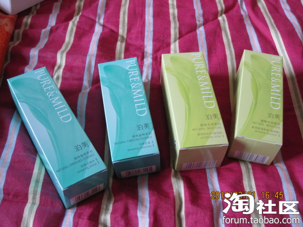 这两套是3。8节时刚刚买的,还没有开封,不过绿色的那两瓶之前有用过,是泊美家的水润系列,用起来还是不错的,还是有一定的滋润度的,左边的盈粹系列是专柜人员推荐的,说是滋润度比水润系列要高,所以决定败回来试试。