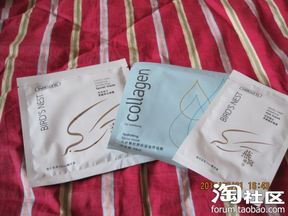 9、屈臣氏天然骨胶原保温滋养面膜(图三(2)),买燕窝面膜时换购的10元3片,很便宜,试过了,用过后脸上软软的,水水,第二天早上很水嫩!!