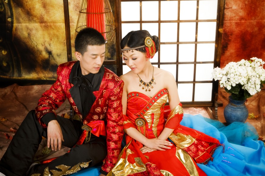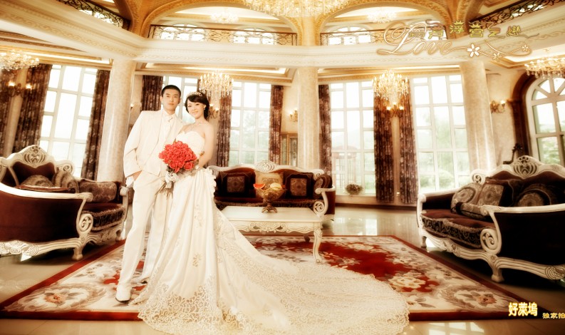 人物有点小,不过还好,能看见美美的白纱!表扬一句--他家的服装还算干净!