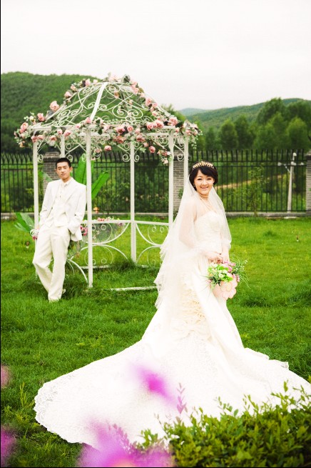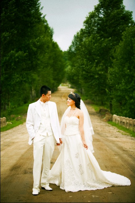 其实有张背影的,被我删掉了,当时就在想60一张、60一张,要背景干嘛?现在有些后悔!因为只有那张能看见婚纱的后面其实是颗心!这张只能看见一点点!