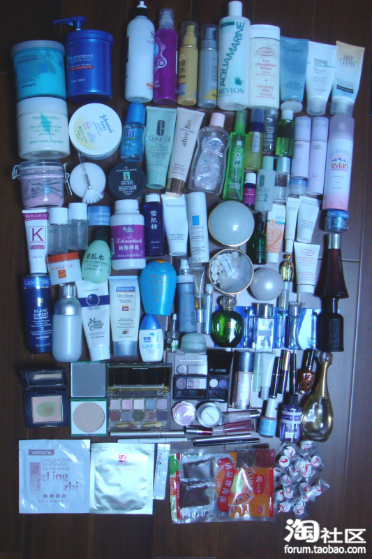 不记得哪一天了,非常无聊,闲来无事,把家里各处滴(洗手间,卧室,冰箱)宝贝都抓到一起,然后扔掉了一些或干,或过期,或是用完了滴大大小小滴瓶子一堆(这些我就没拍照片啦),因为都是晚上拍滴,所以比较暗,而且还偏色滴厉害,大家将就看一下吧