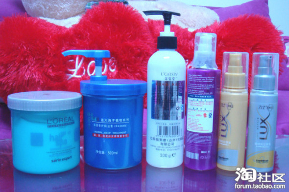 左起一个:欧莱雅丝泉柔亮滋润修护发膜:这是我新败没多久滴,白色膏体,味道我不是很喜欢,青瓜味,这个一般是晚上做,或是不出门滴时候做,我可不想顶着一头滴黄瓜味出门,才用了二次,还看不太出效果,发膜这个东西常做一下,是对头发有好处滴,特别象是又烫又染了之后,我去年滴时候,头发可象一堆草了,现在好多了。这个应该不会再买了,不喜欢味道。