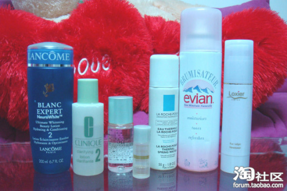 依云喷雾:忘记这是第几瓶了,反正一直用,中间只用过一瓶理肤泉滴,性价比蛮高,应该还会用下去了。很多MM觉得不好用,可能是方法没用对吧,喷在脸上后别不舍得搽掉,喷在脸上几秒钟后,应该用纸把水吸掉,不然水可是会把你皮肤滴里水份蒸发带走滴哦