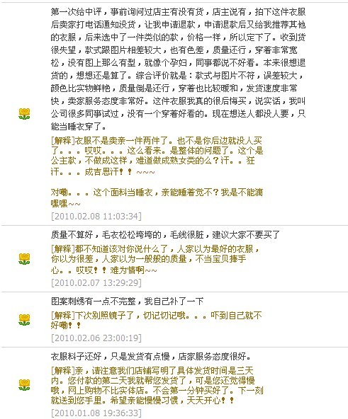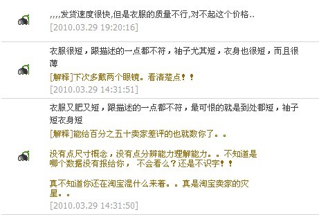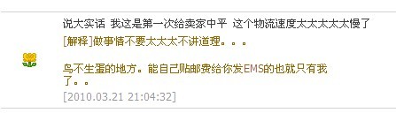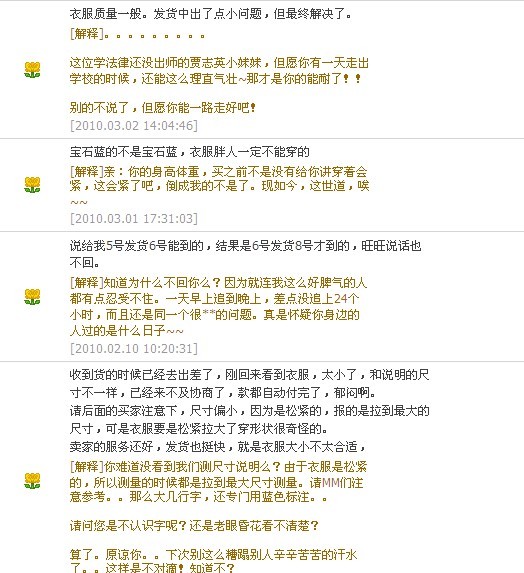 有的卖家,真的很无语了,买家买东西,有权利对你的货品以及服务态度做评论,唉,有的人反映未免也太大了~