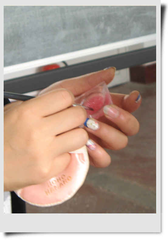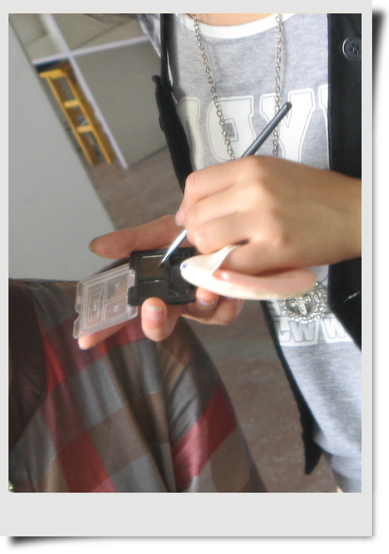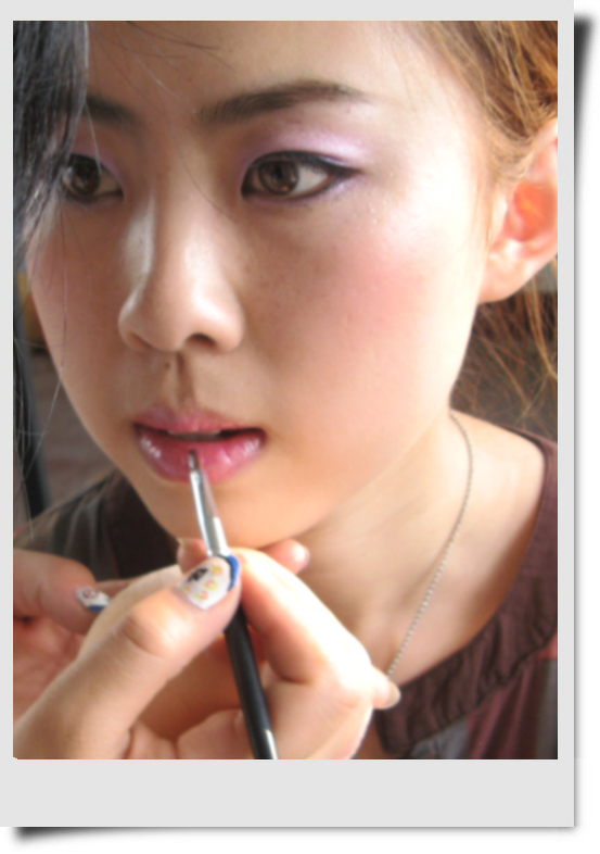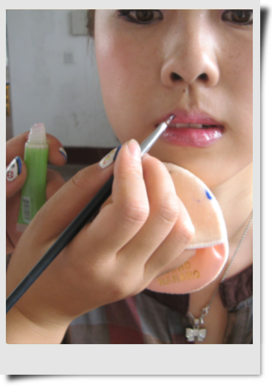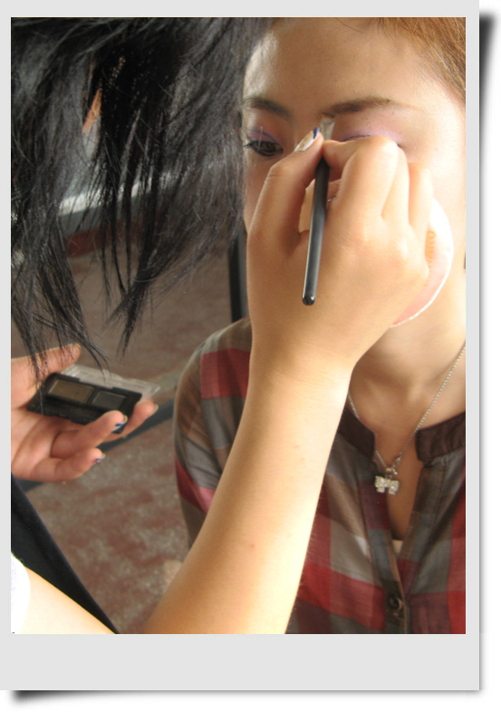 今天给大家介绍的是Elain,本来应该她自己写帖子的,但她不熟悉淘宝,这个只好我来代笔了。Elain是个化妆高手哦~现在还在校园里读书,不过化妆的技巧却很娴熟呢~她是个工作狂~做起事来很在状态的,不过有点不顾自己形象啦~今天拍这些照片时 她还粒米未进,刚做个演出下来,满脸的疲惫,头发因为演出时做了打毛,很蓬的造型。她就只是随便拢了一下。所以大家今天看到的Elain是比较狼狈的样子。为了换演出服方便,就穿了件大衬衫,我看到她是脚上还是一双运动鞋.一切都是为了工作。