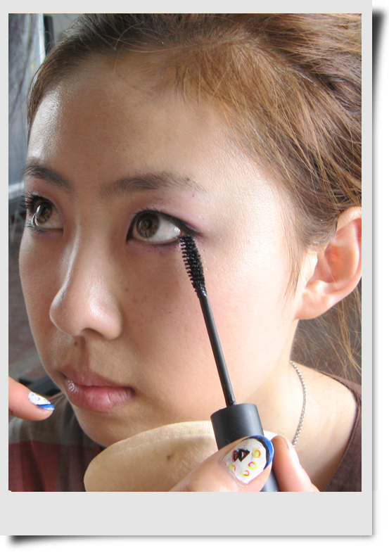 下睫毛要这样涂~又来电话了~只好这样边接电话边化~~~