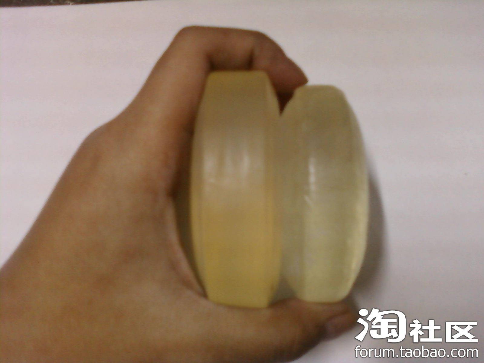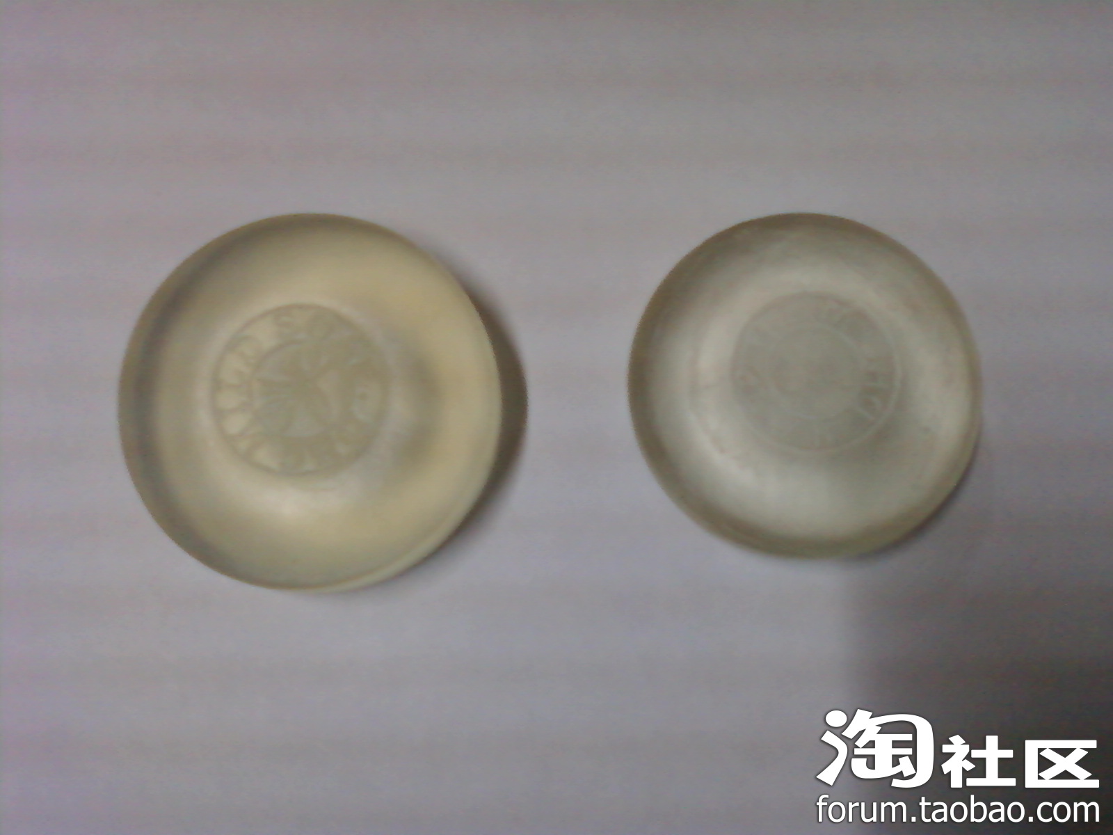 这张图片是2张皂的对比,明显假的那块分量不足.当然有人会说,万一那是你用小了呢,我可以告诉你,假的这块,我用了3次,每次用在脸上都有强烈刺痛感,而且洗完,脸变的红红的,要好久才可以消.而真的那块,我到现在还在用,就完全不会出现这类情况.当然,洗的时候皂的泡沫进了眼睛是另外一回事.