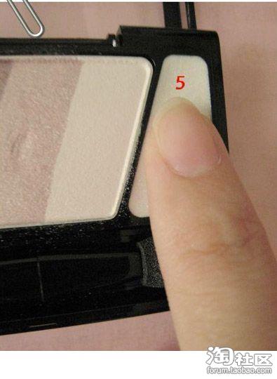 先上5号,用食指就可以闹~涂抹在整个眼窝哦!顺便带到下眼角