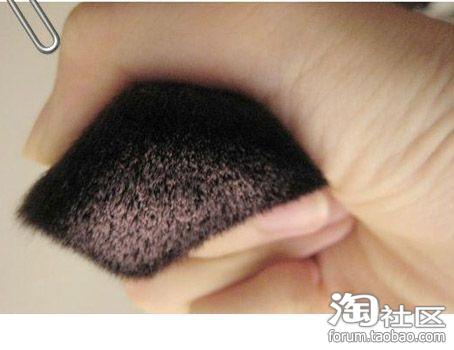 其实很简单滴,用手捏住散粉扫滴头就可以闹~扫出来的形状还很不错哦