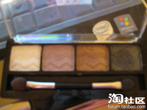 我的眼影有4种颜色:白。紫。金灰。深灰
