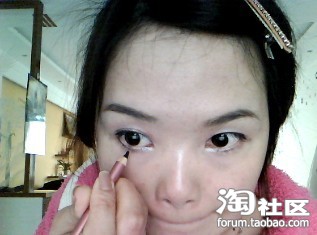 沿着睫毛根部画,下眼睑我采用的是尾部粗线,