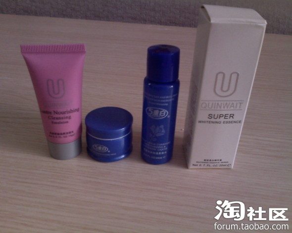 从左到右依次是:亮颜雪凝滋养洁面乳洗面奶,雪莲活泉弹力补水霜,雪莲活泉恒温柔肤水和这次的试用品,极致美白精华素啦