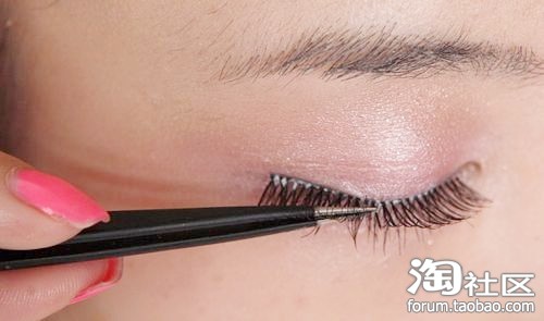第八步:粘假睫毛——臻臻用假睫毛已有十件的历史了,呵呵!特别爱用手工制的,特别轻,不易起翘,也很自然。粘睫毛最好用镊子,而且是先从中间粘起,然后再调整前后的睫毛。要紧贴自己真睫毛的根部哦!