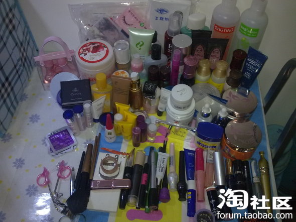 我擦。敢问美女。这些化妆品您都花了多少钱?楼主还不是一点的败价哟,这么多的东东!!!