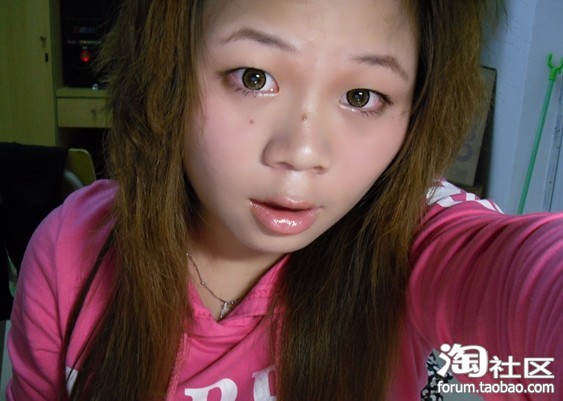 我已经上好腮红和唇彩拉。。。