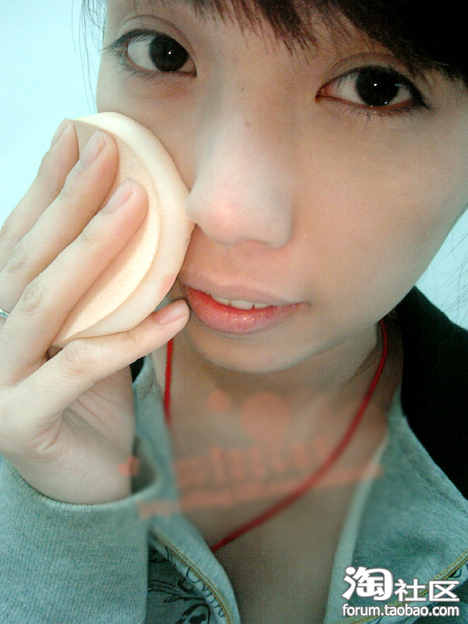 自身配的粉扑太小了。只是外出补妆才用。在家的时候都是用大粉扑上粉。轻轻的按压。