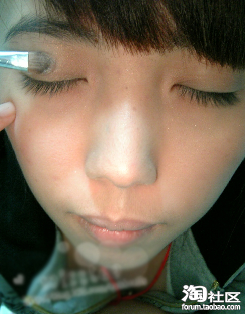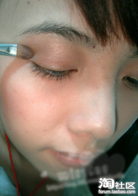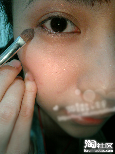 下眼部也轻轻刷上一层。眼尾可以多刷一层。感觉有点渐变。