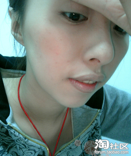 先上无妆照。。皮肤有点黄。还有痘痘。。黑眼圈也重!!!!!