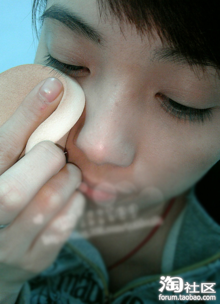 遮瑕完毕后。我就上粉饼。有的人是习惯了上粉底液后就不上粉饼。因为我喜欢亚光的效果。所以我都会再轻轻拍上一层粉饼。