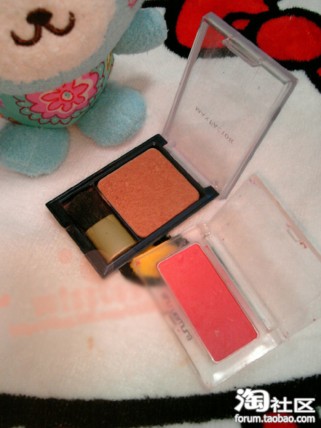 腮红我用的是MAXFACTOR和植村秀的。植村秀的色系选得偏红了点。每次刷之前都要先扫掉一层。才不会变猴子屁股。