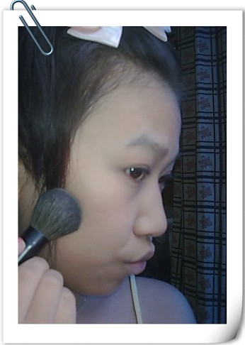 然后上一层粉.,要少喔.,`起到定妆的效果.,多了妆就显的很重了.,