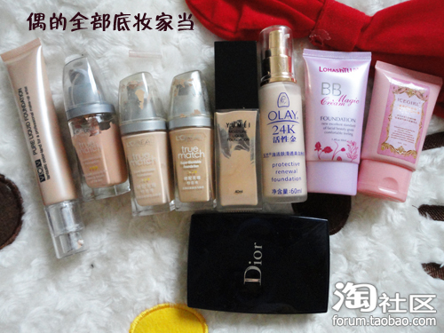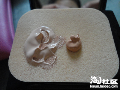 然后再挤点欧莱雅的3号深色粉底是BB霜的一半