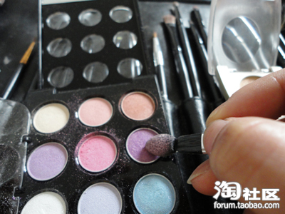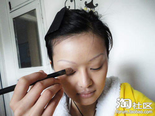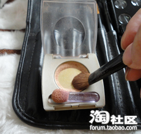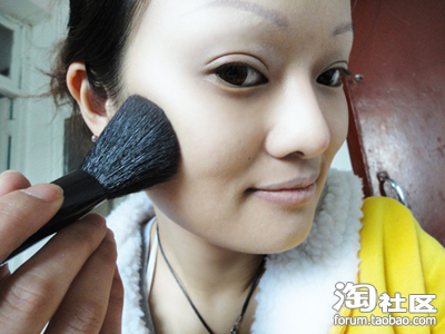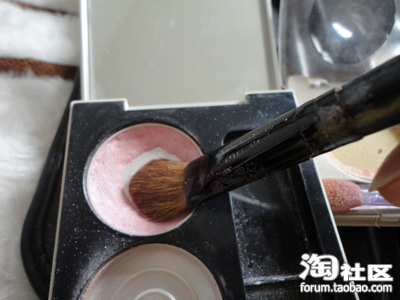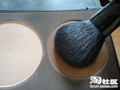 深色修容粉,沾好之后记得把多余的粉从粉刷上甩掉啊