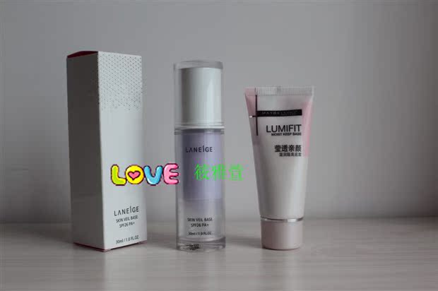兰芝雪纱防晒隔离霜(紫色)和美宝莲莹透亲颜隔离(无色),效果还可以,但是我更想要碧欧泉的防晒隔离,那里面有细闪带防晒,我爱啊~把这些个用光就换~